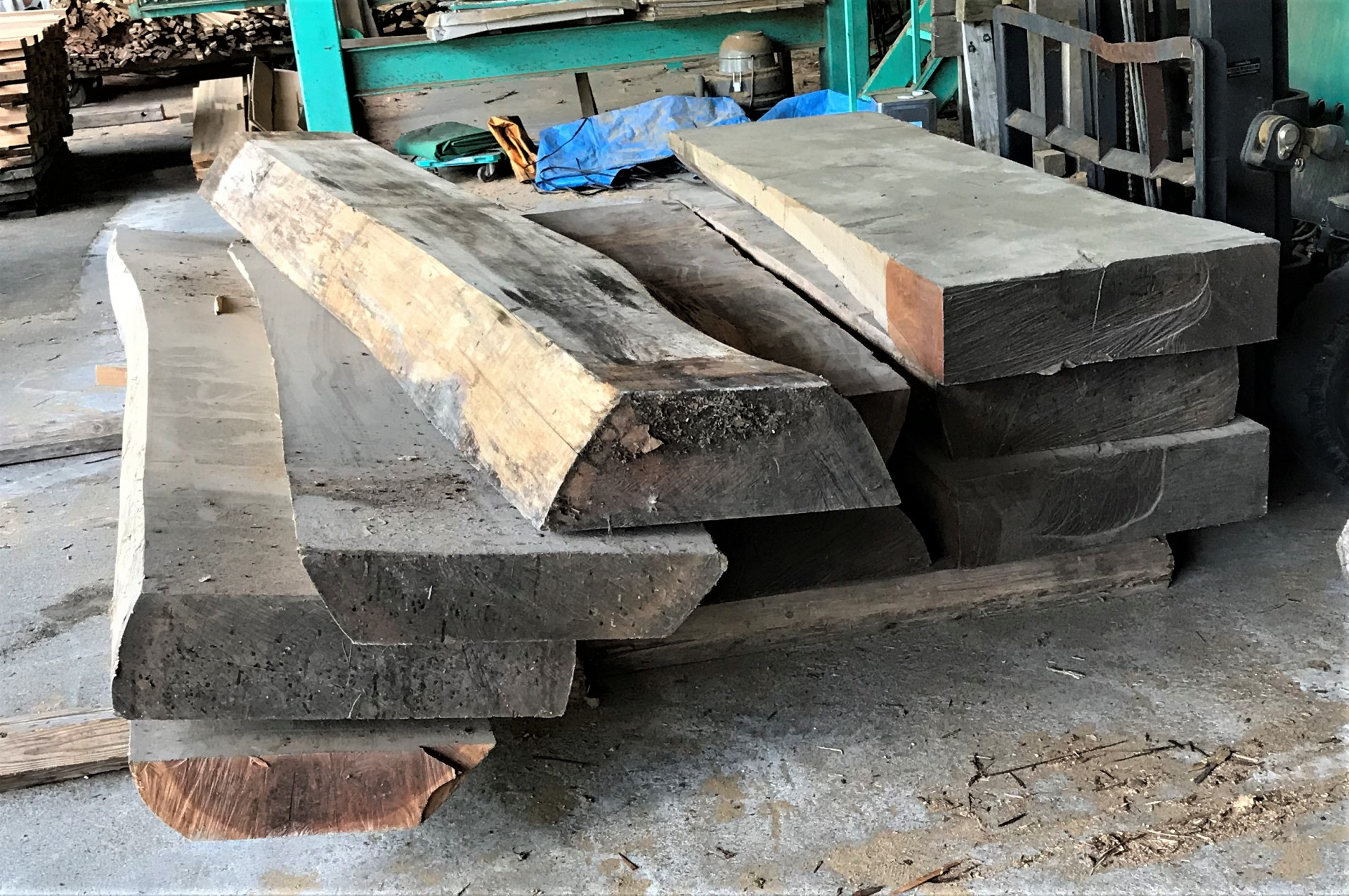 徳島県名西郡神山町下分字西寺にある宇佐八幡神社様の床下に約40年間眠っていたケヤキ幅60cm~63cm厚み12cm~18cm長さ2m~3m20cm)のを全部で11枚格安で頂いてきました。