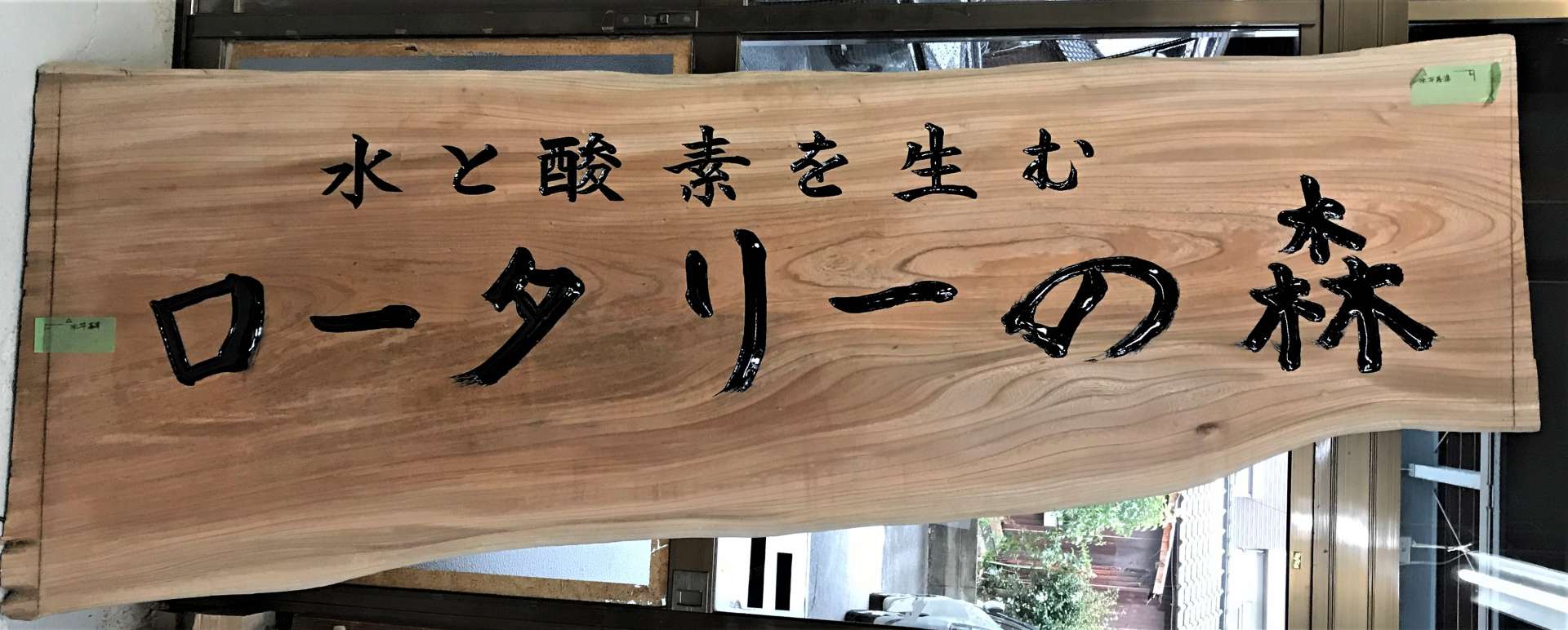 脇町ロータリークラブ様よりロータリーの森の看板製作を依頼していただきました。 2021/03/06 脇町ロータリークラブがロータリーの森を作っているようです。 その看板の制作を依頼されました。 これに2本の支柱を裏から立てて設置する様です。 総ケヤキでかなり大きな看板になります。 重さも重く1人では持ち上がらないので文字を彫るのも大変でした。